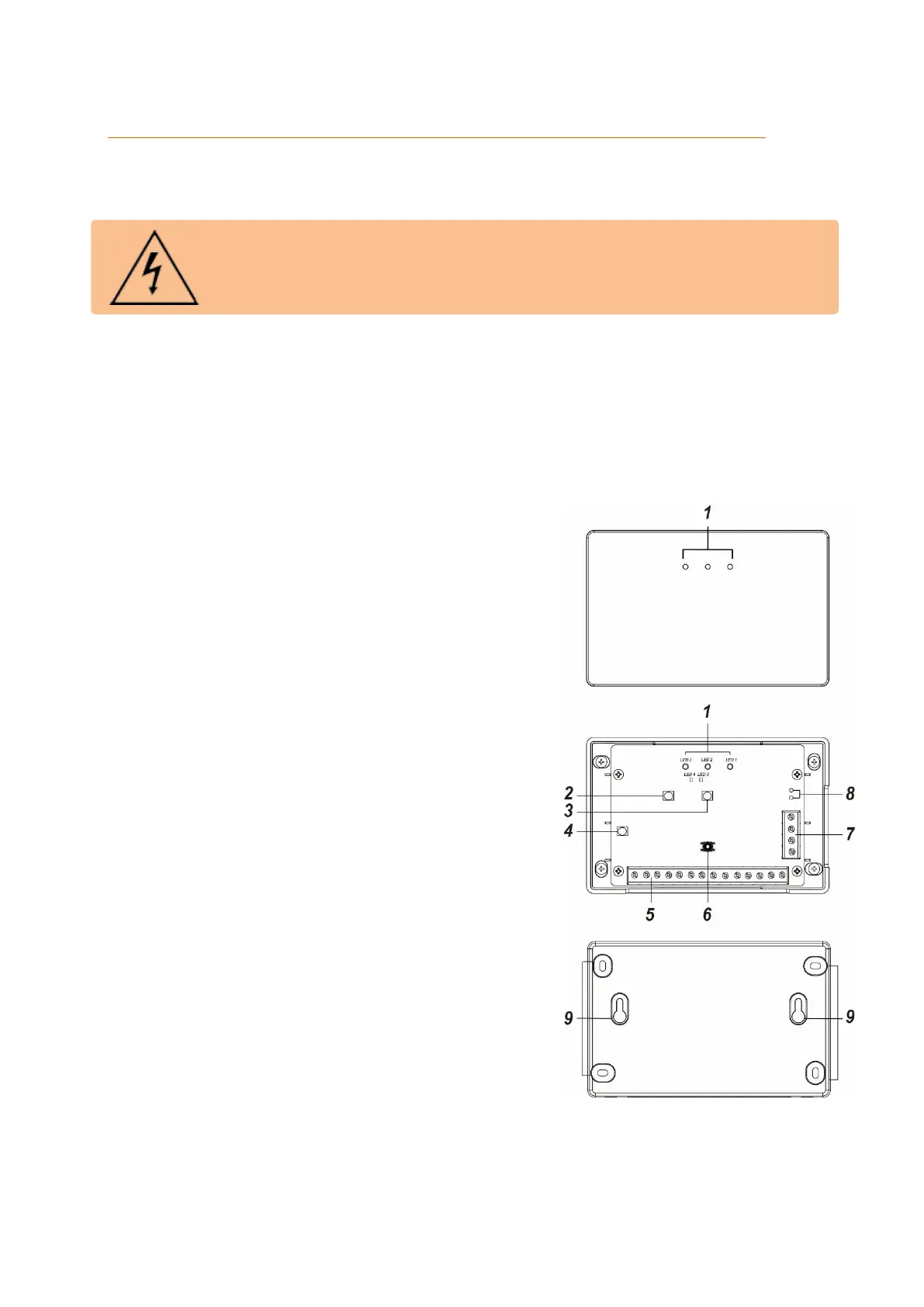 The sensor input (9 fold) connects wirelessly to the alarm panel and features nine dry