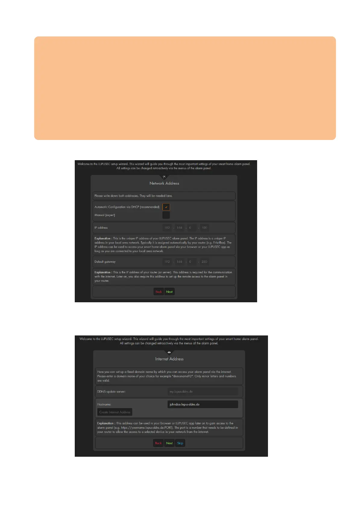 c) Now you can change the network settings of the alarm panel. We advice you