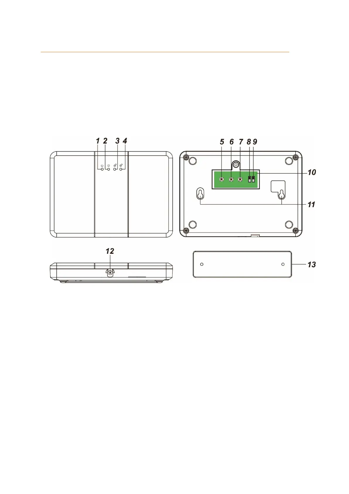 This LED flashes when the wireless repeater V2 transmits a signal to the alarm