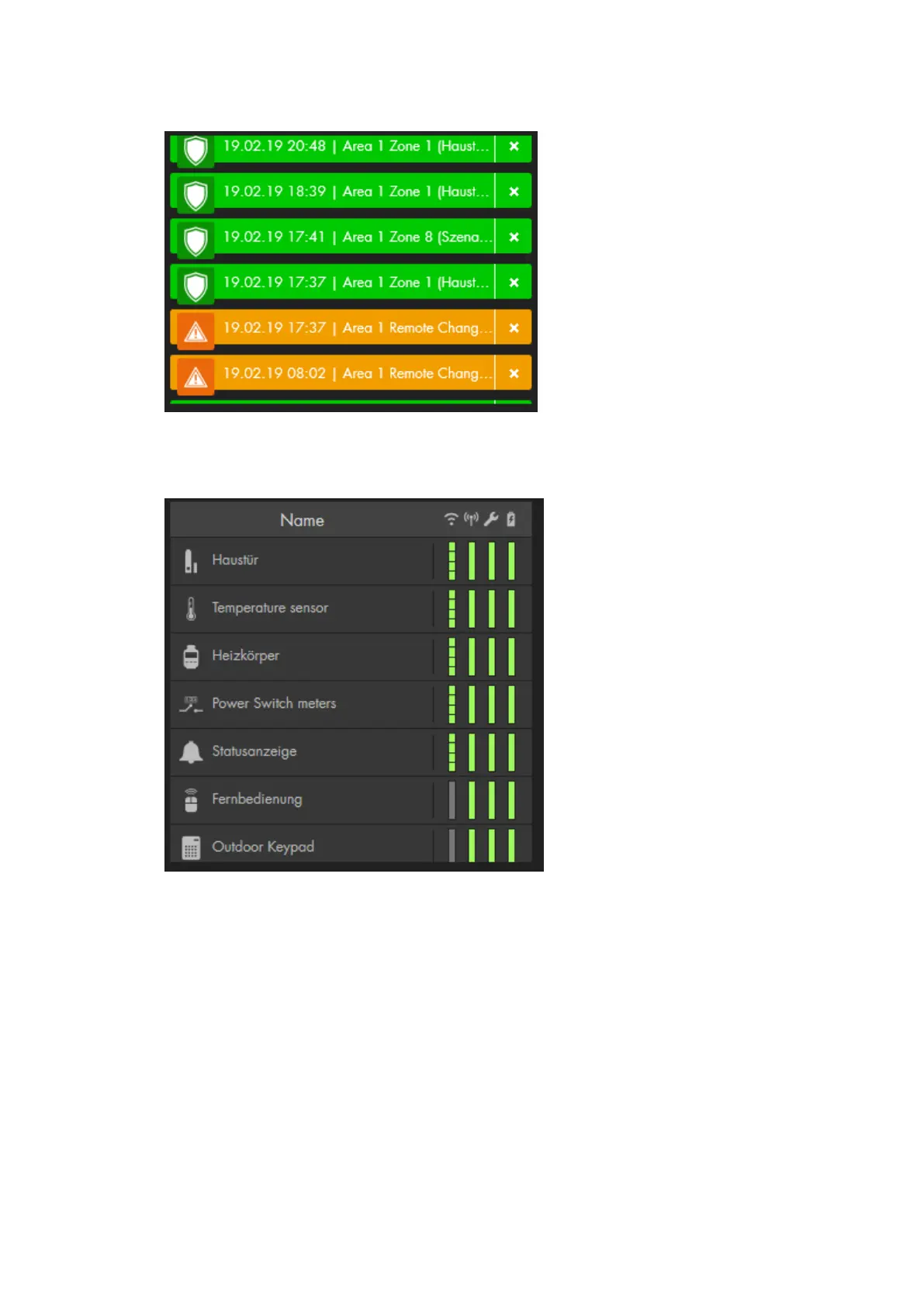 battery status (battery symbol). The indicators are colour coded, green signals that