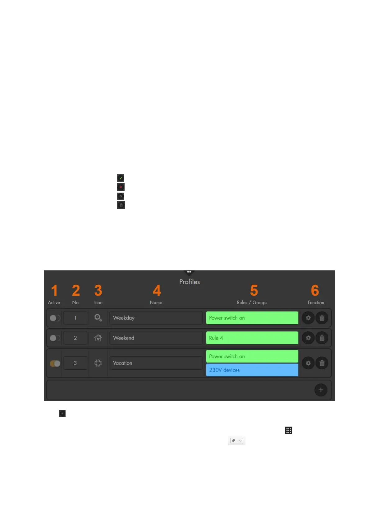 and, on the other hand, assigned to an active profile. You can create up to five profiles,