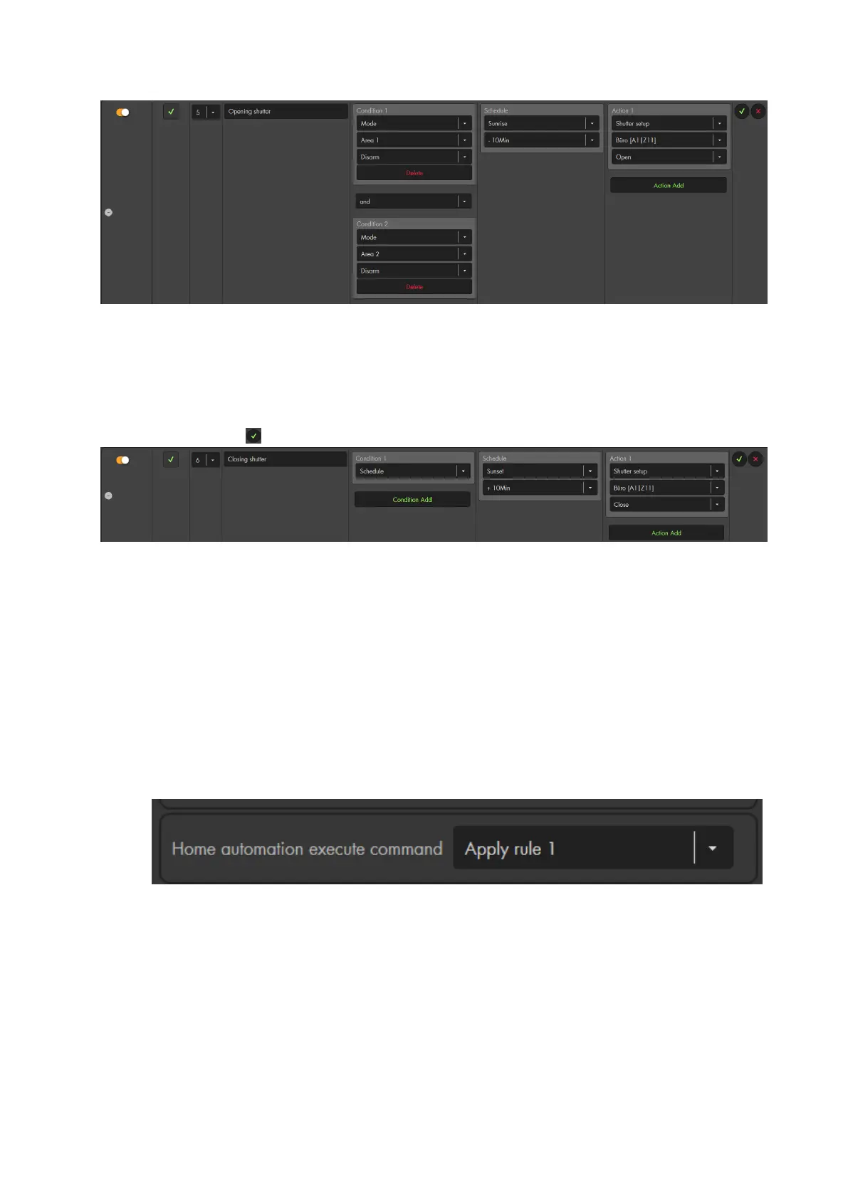 Select “Action” Shutter setup” “Area 1 Zone 11” “Close”.