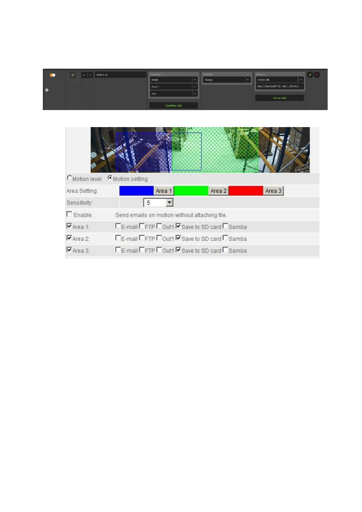 the motion detection of area 1).