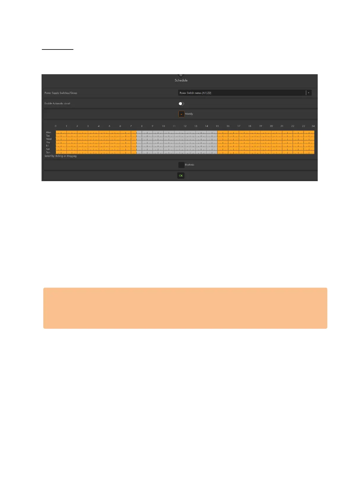 The schedule menu allows you to define when a PSS device is switched on and when it