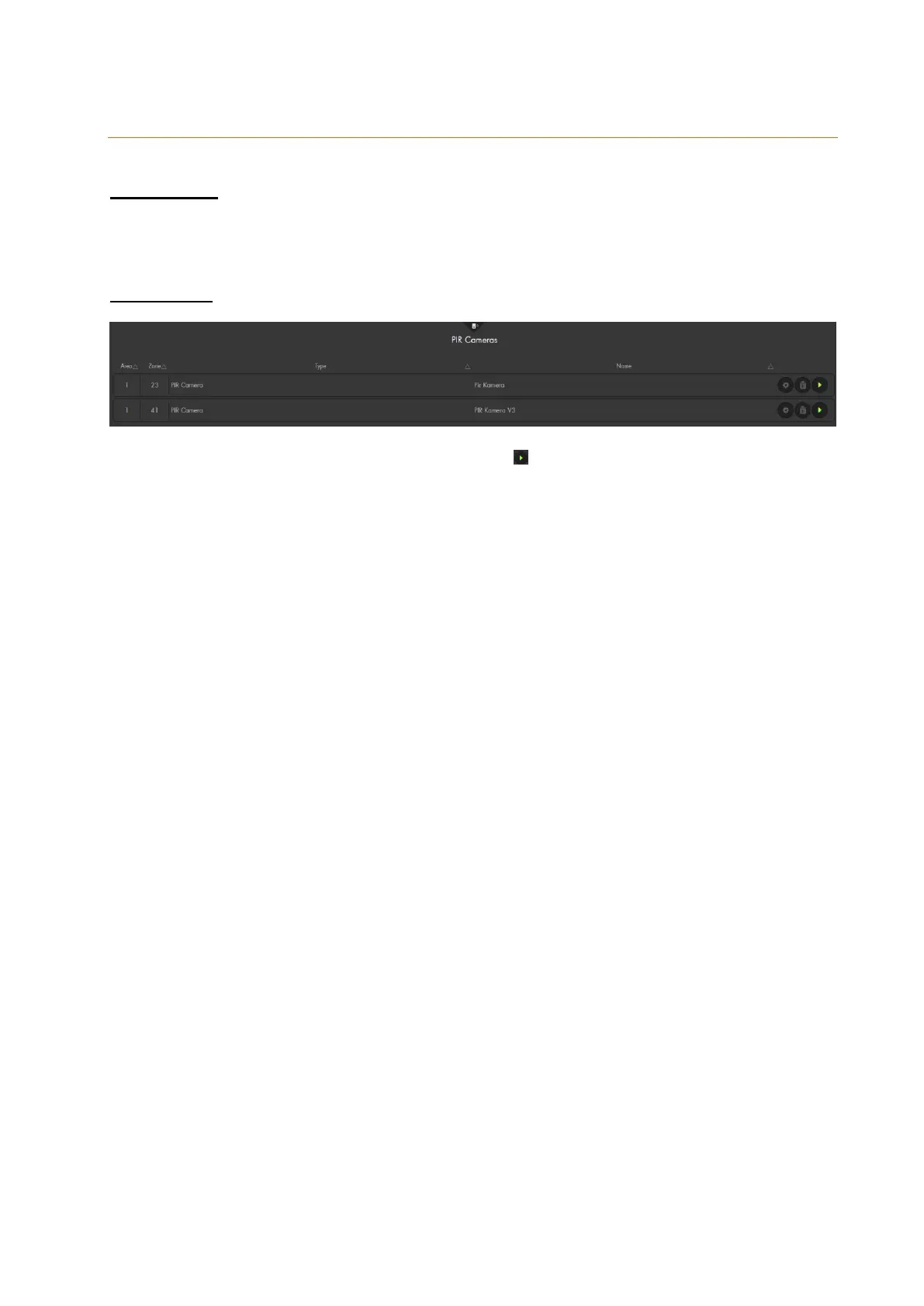 This menu displays the added PIR network cameras. allows you to manually trigger a