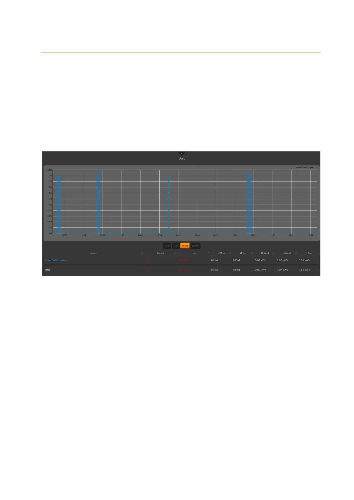You can select if you want to display the power consumption of the last hour, day, week,