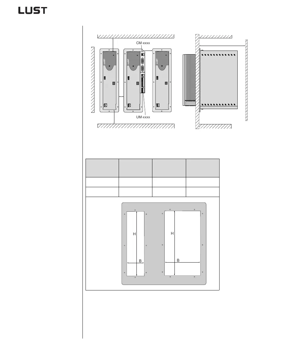 Figure 2.3 Mounting clearances (see Table 2.6)