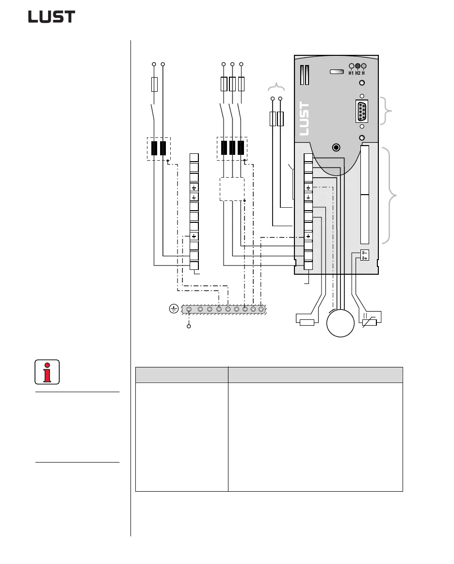 2) In inverter modules up to 7.5 kW (BG1 to BG4) the mains filter is built-in.