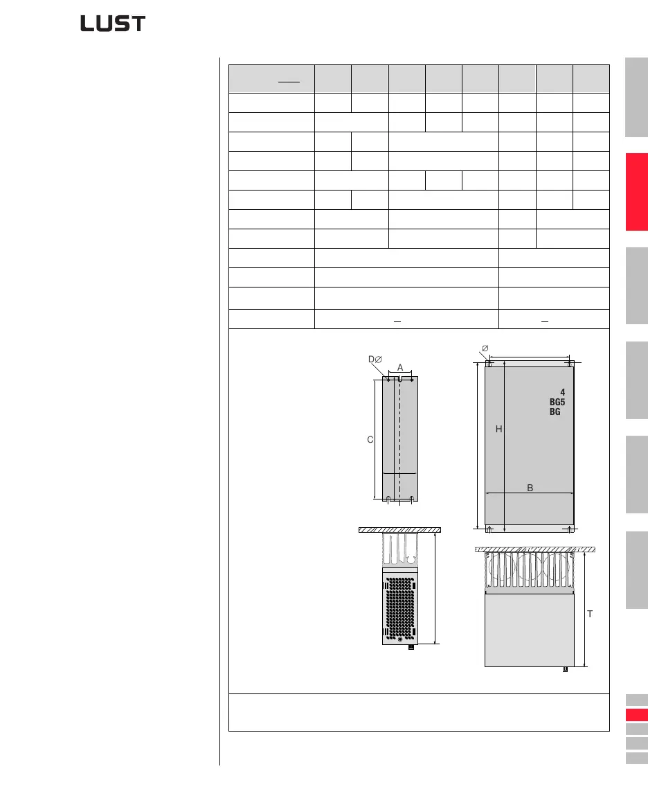 Table 2.2 Dimensional drawings: Wall mounting (dimensions in mm)