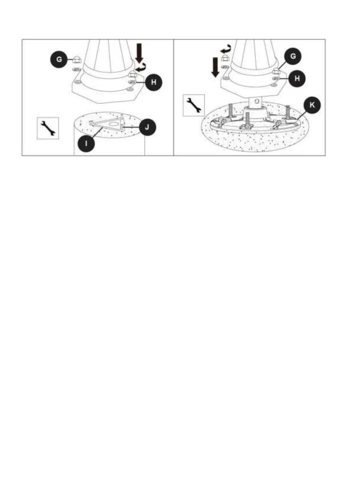 Mounting Bracket (I) and Anchor Bolt (J). Place