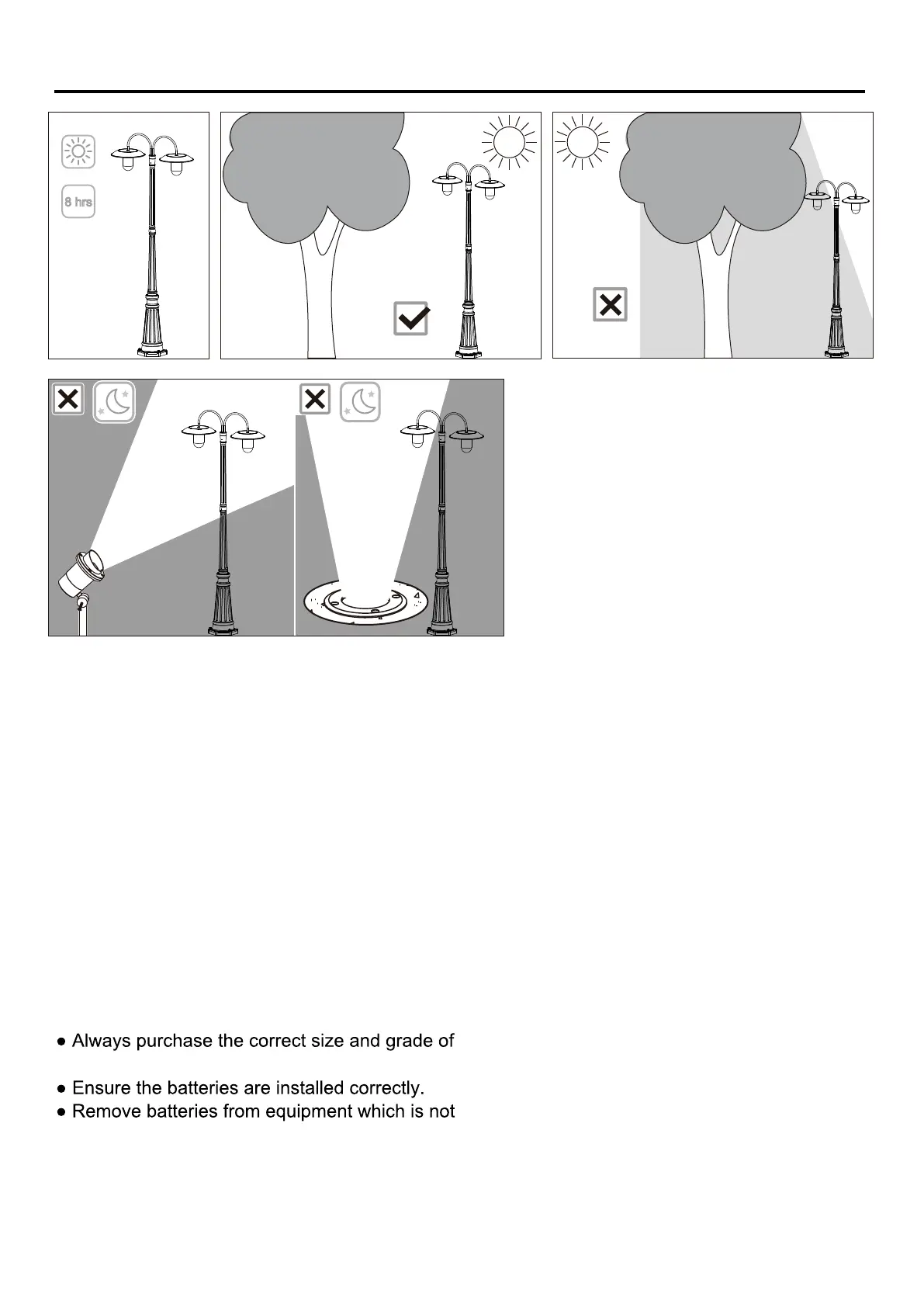 Location: Choose location with minimum 6-8 hours sunlight. When choosing a spot for your solar