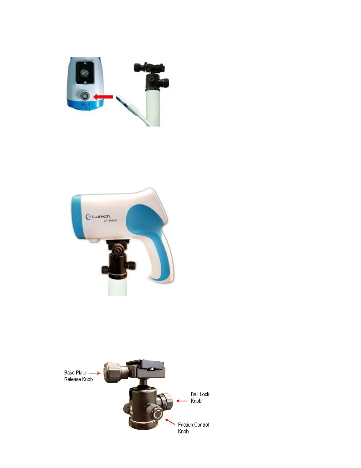 • Do not let go of the colposcope camera until the ball lock is tightened. The ball lock and friction