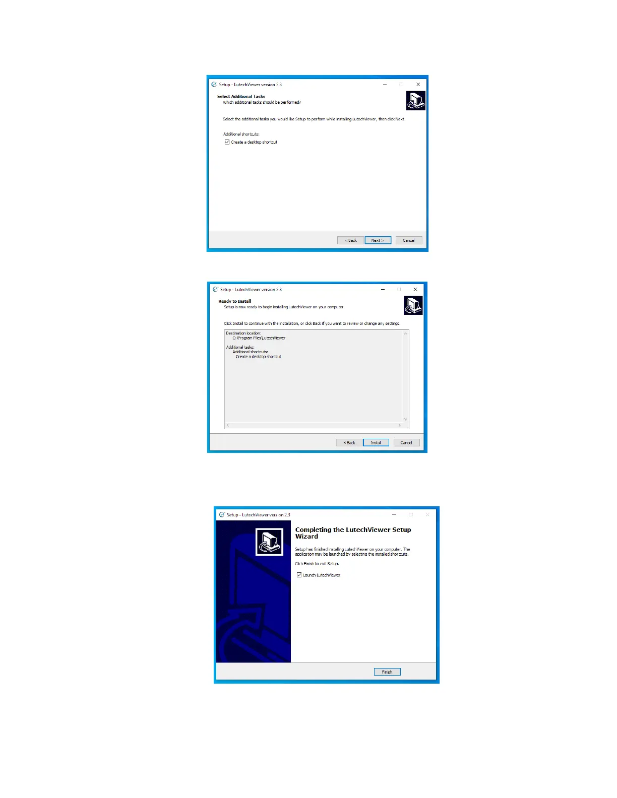 7. The installation is now complete. Check the box next to “Launch LutechViewer” if you would like to start the