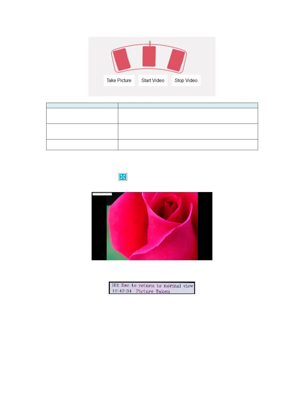 picture/video log area. The picture will be displayed in a new larger window. Click on the X on the upper