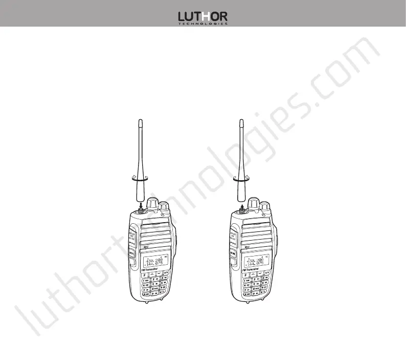 upper side of the radio, hold it on the base and make it turn clockwise into the transceiver’s top
