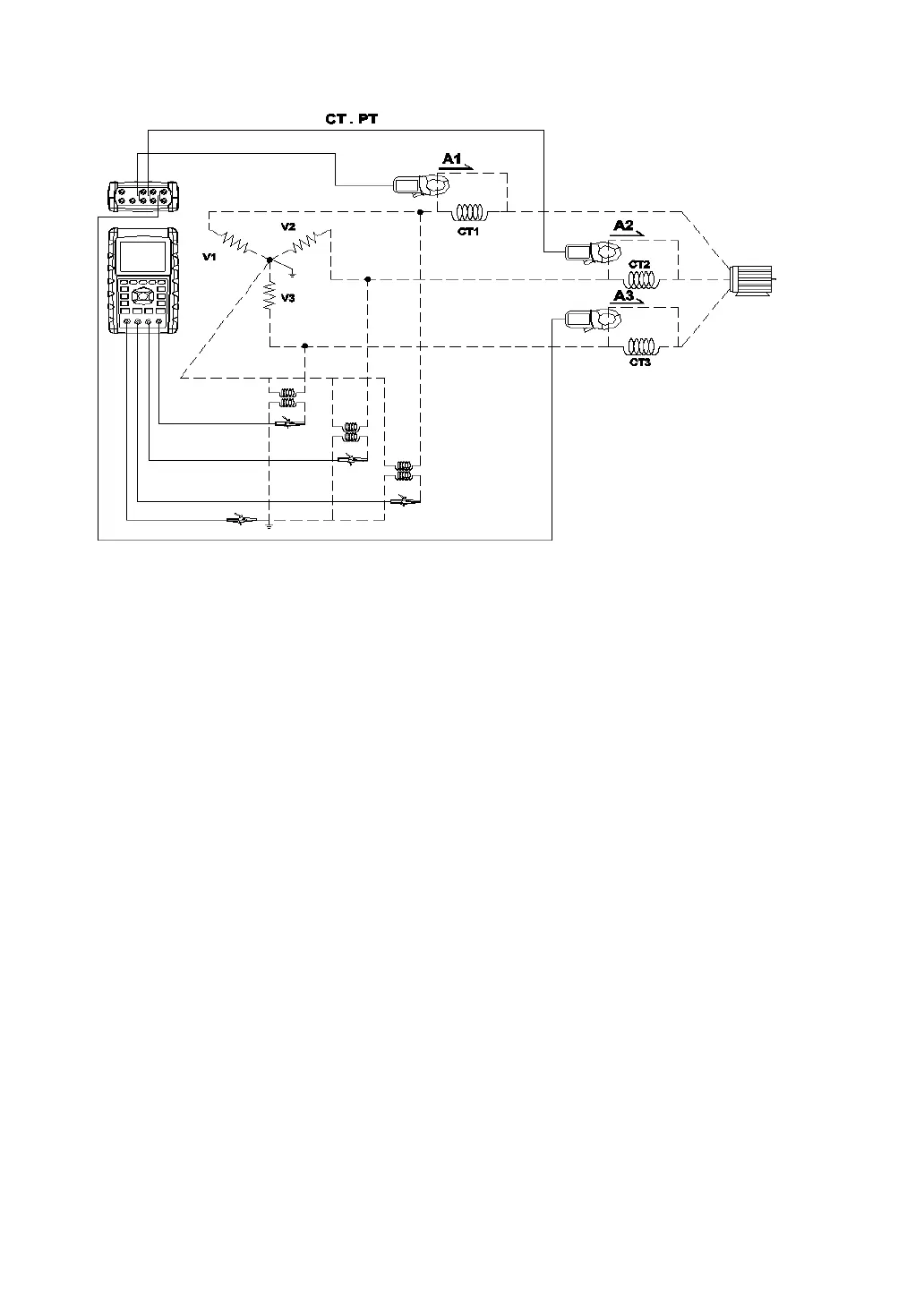 V2, V3 and N terminals of the instrument.