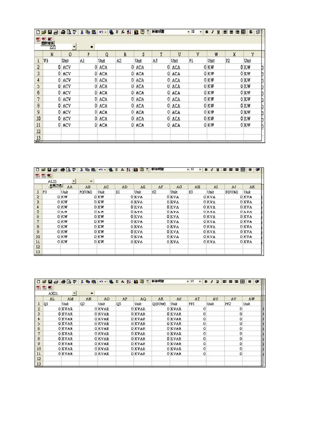 EXCEL data screen 3 ( for example )