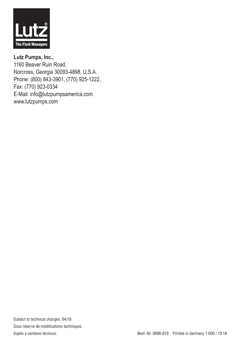 Sujeto a cambios técnicos. Best.-Nr. 0698-819 Printed in Germany 1.600 / 10.18