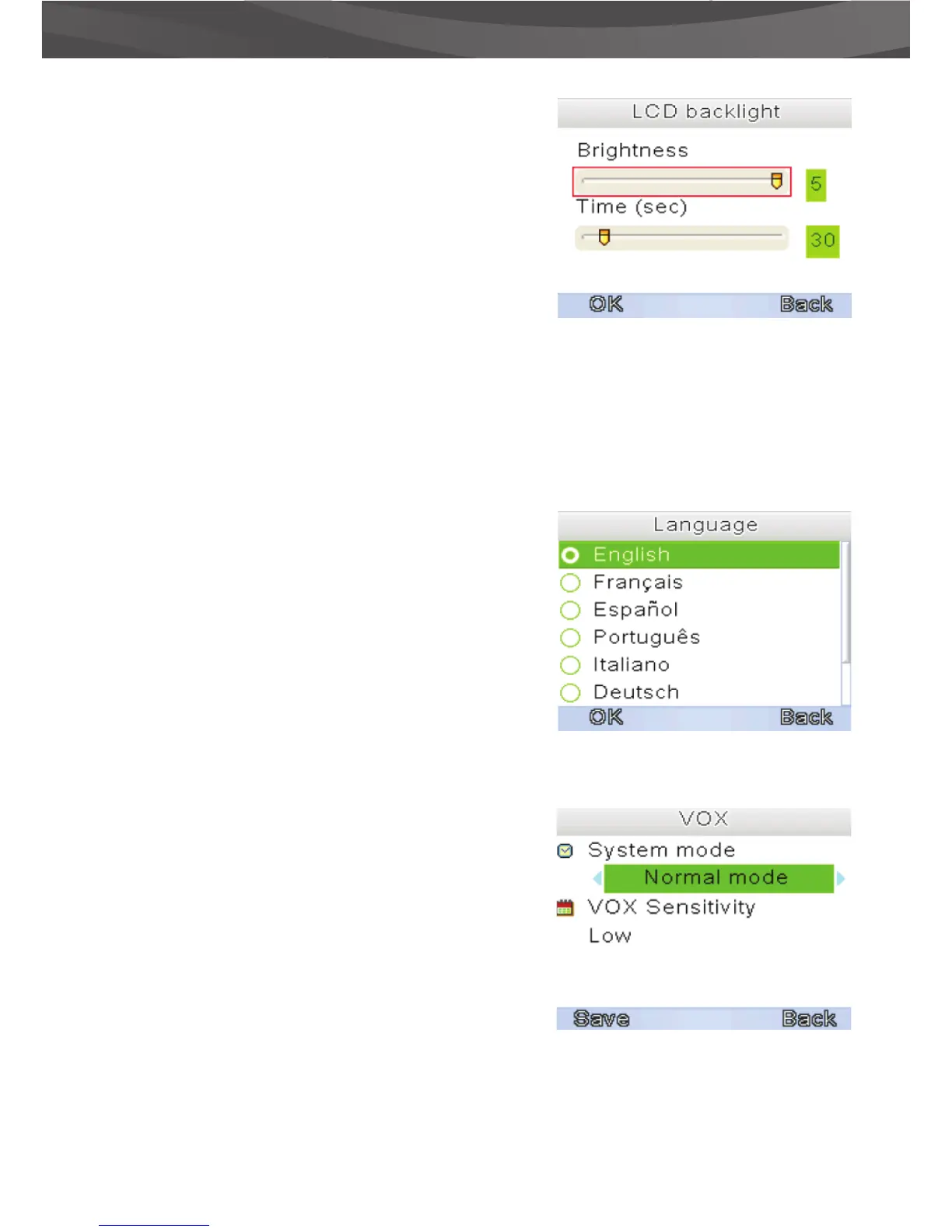In diesem Menü können Sie den VOX-Modus aktivieren