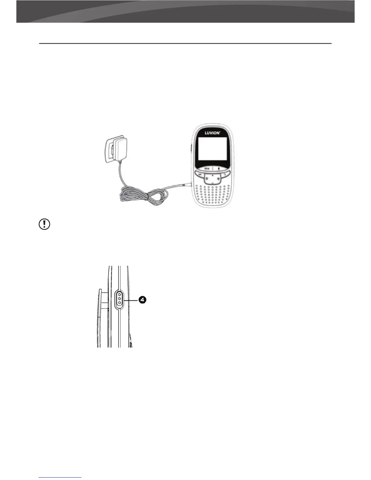 2. Connect the power adapter to the parent unit and power socket. The parent unit will start charging;