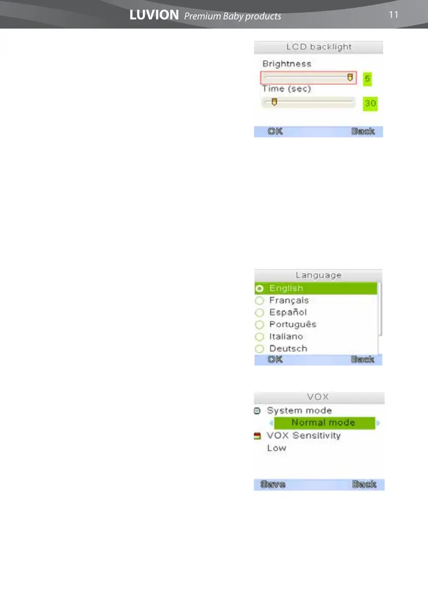 You can change the LCD backlight brightness and the