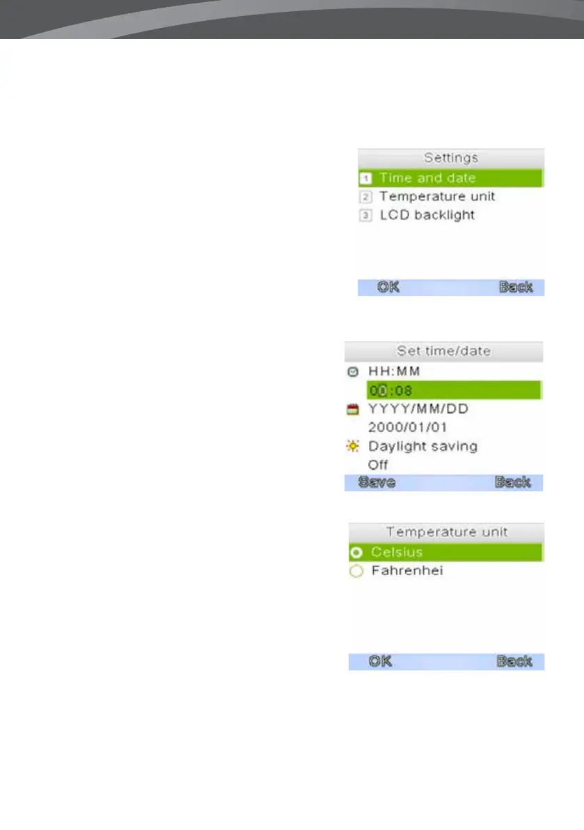 und Uhrzeit einzustellen, die Temperatureinheit zu