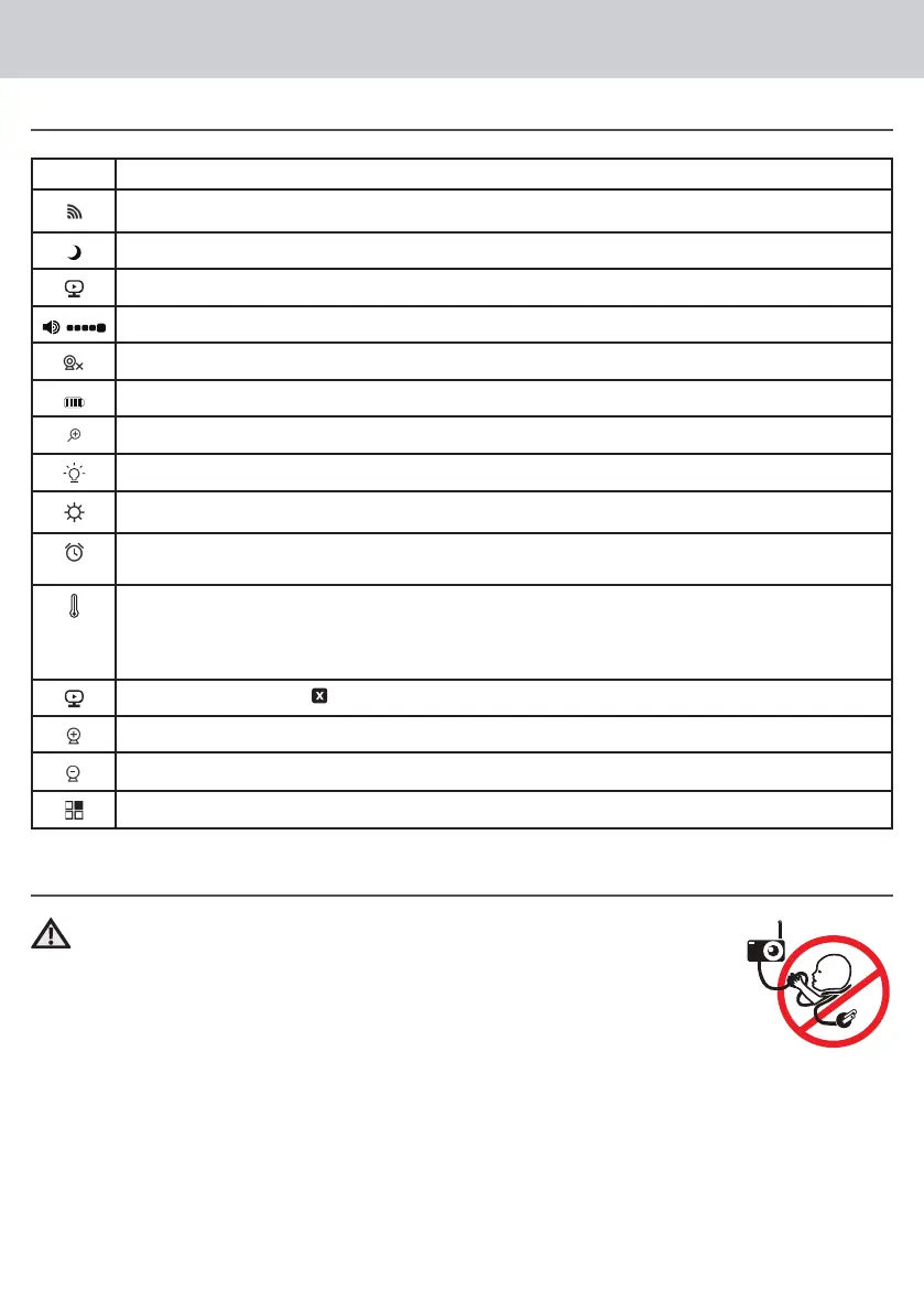 from the cot and out of the baby’s reach. NEVER place Baby Unit or cords within
