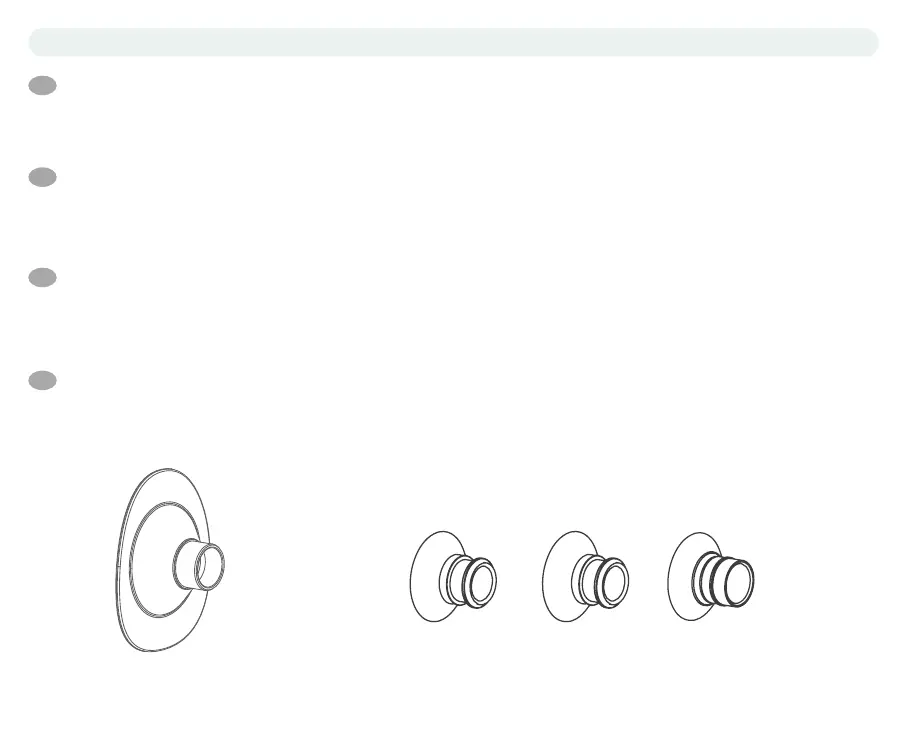 Le Wearable Breast Pump est livré avec une téterelle de 25 mm et trois inserts supplémentaires en silicone de 21 mm, 17 mm et 15 mm, an que