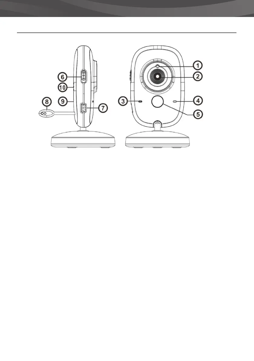 9. Pairing knop - Maakt een nieuwe verbinding tussen de camera en monitor wanneer het ‘pairing proces’