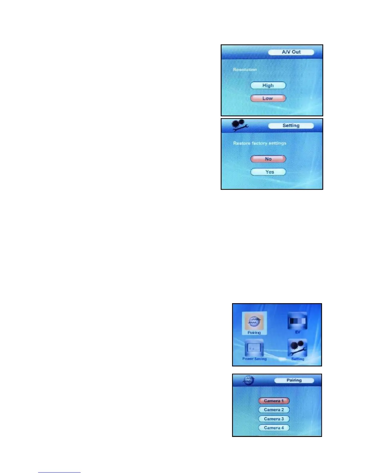 NOTE: Camera pairing settings will NOT be affected by a reset.