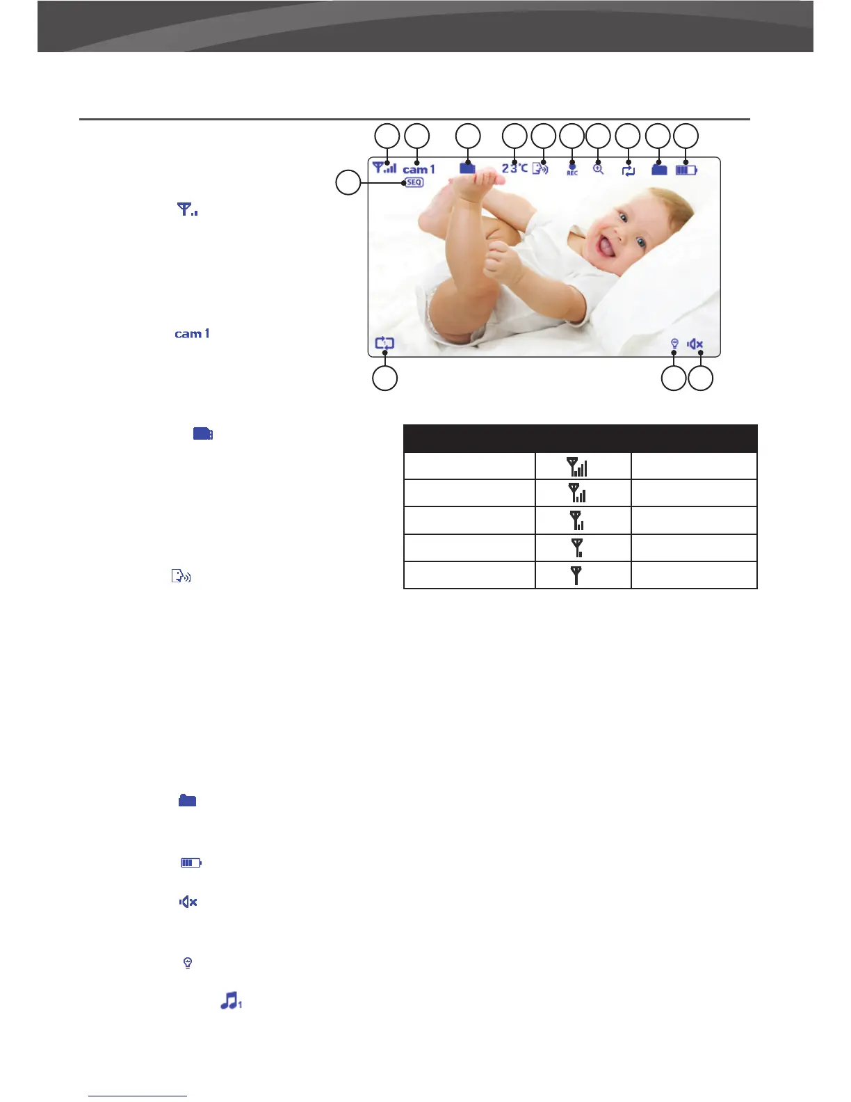 12. Nattlysikon Blir vist når nattlys på babyenheten er aktivert.