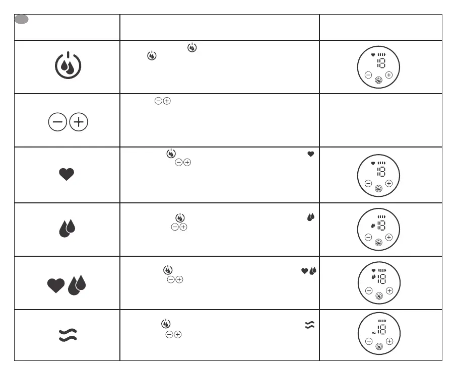 De massagemodus bevat 5 werkingsniveaus. De kolfmodus