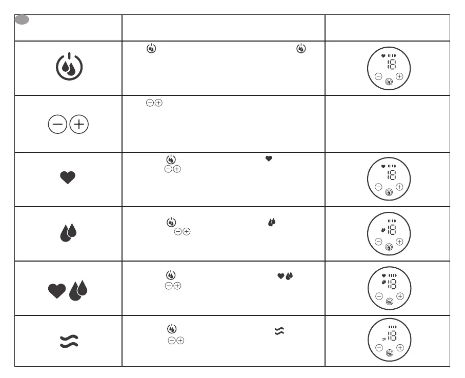 The massage mode contains 5 operating levels. The pump mode