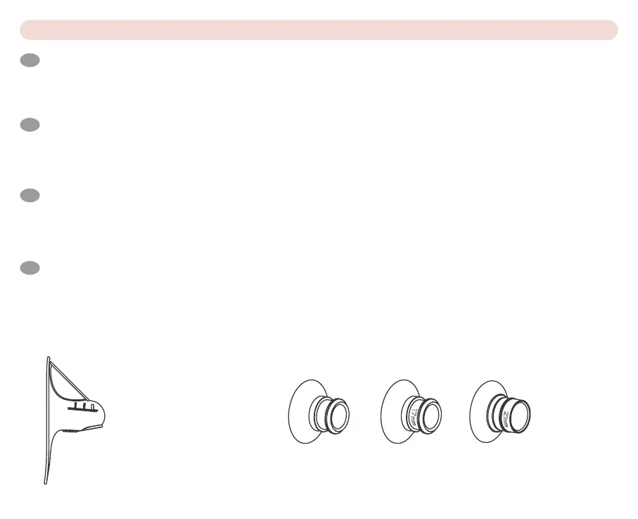 Le tire-lait portable est livré avec une téterelle pré-assemblée de 25 mm et trois inserts supplémentaires en silicone de 21 mm, 17 mm et 15 mm,