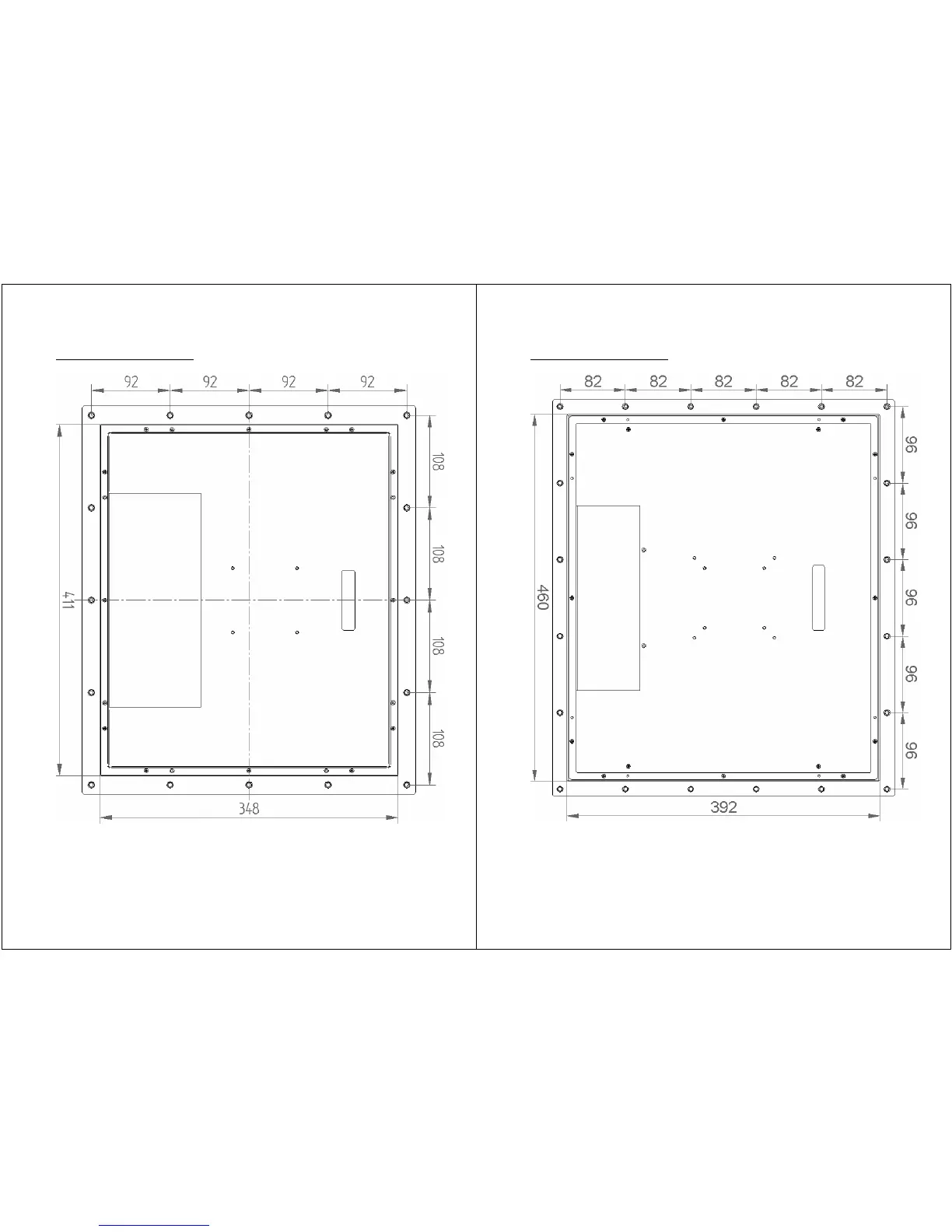 NOTE: Use cutout of 462 x 394mm and 20 x ø 7mm holes