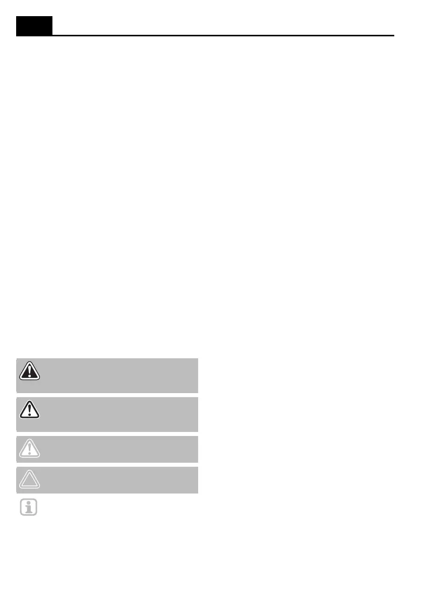Indicazioni di pericolo e note sono contraddistinte