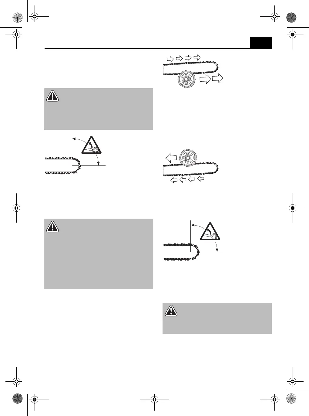 ska verižno žago nazaj proti uporabniku. Če