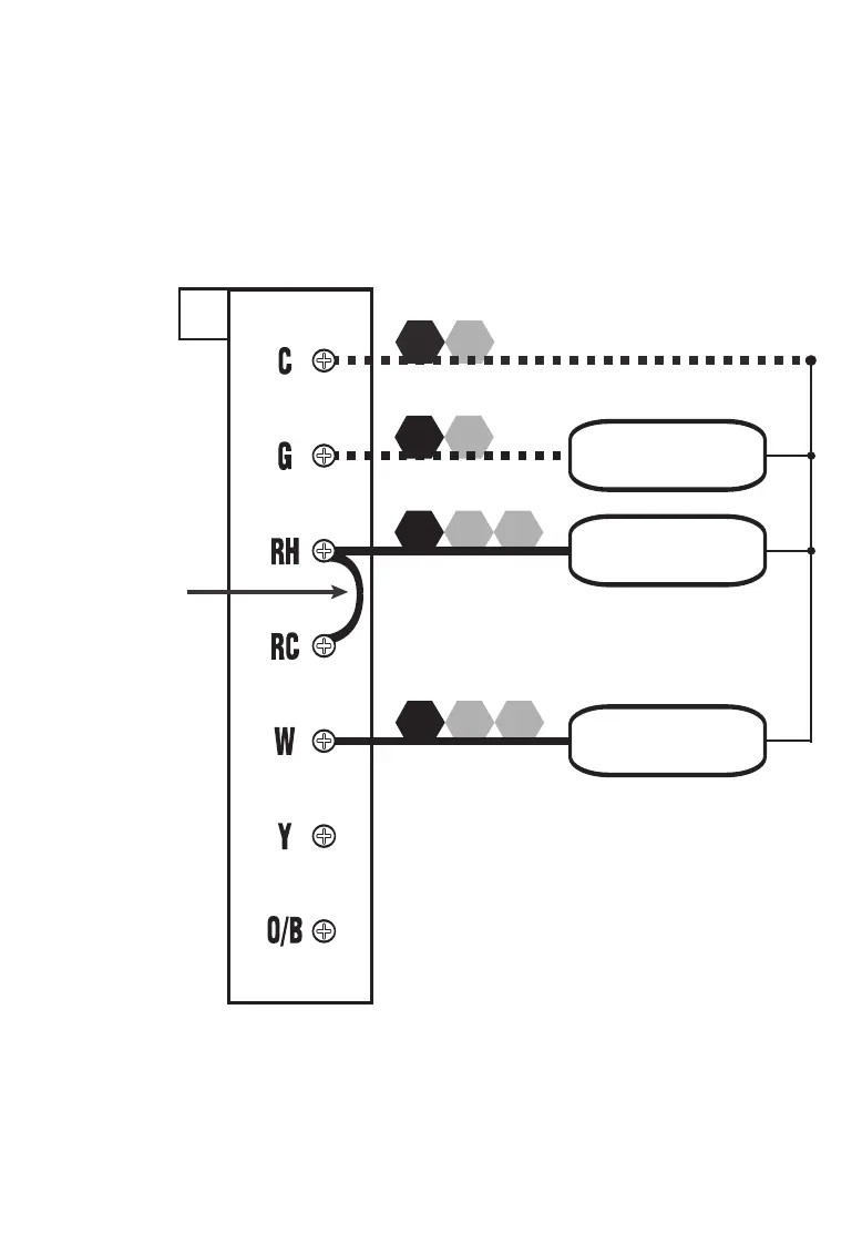 6) If your existing thermostat connections contain a wire labeled as “W2”, “AUX”, “E”, or “X2”, this