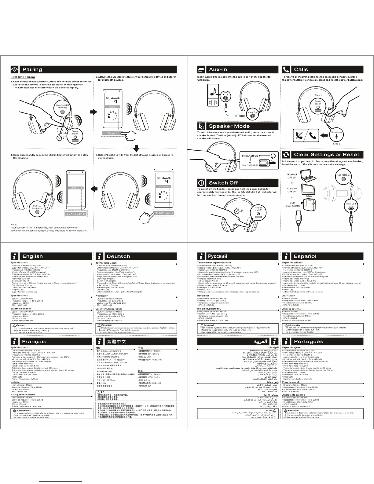 Luxa2 Lavi S - Connecting and Operating the Headset; Bluetooth Pairing; Aux-In Connection; Call Management