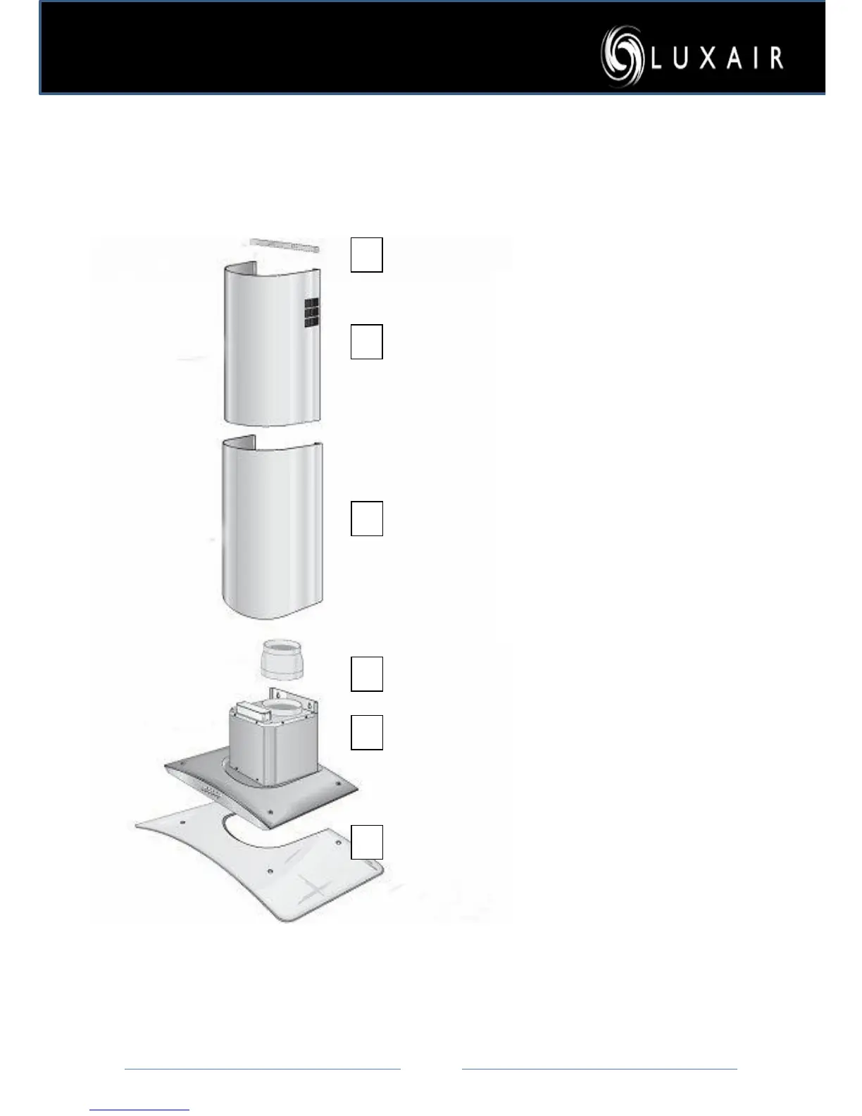Luxair STD Series - Glass Hood Components; Identification of Glass Hood Parts