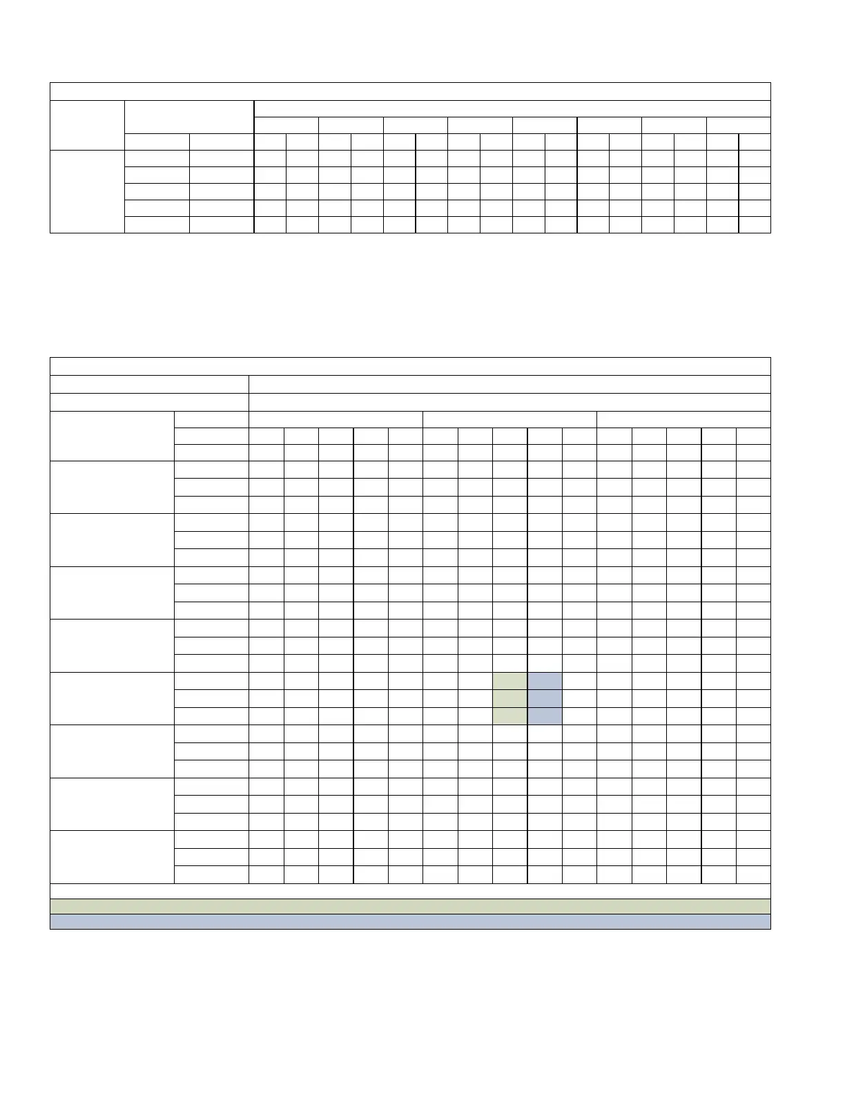 Blue shaded cells are AHRI conditions.