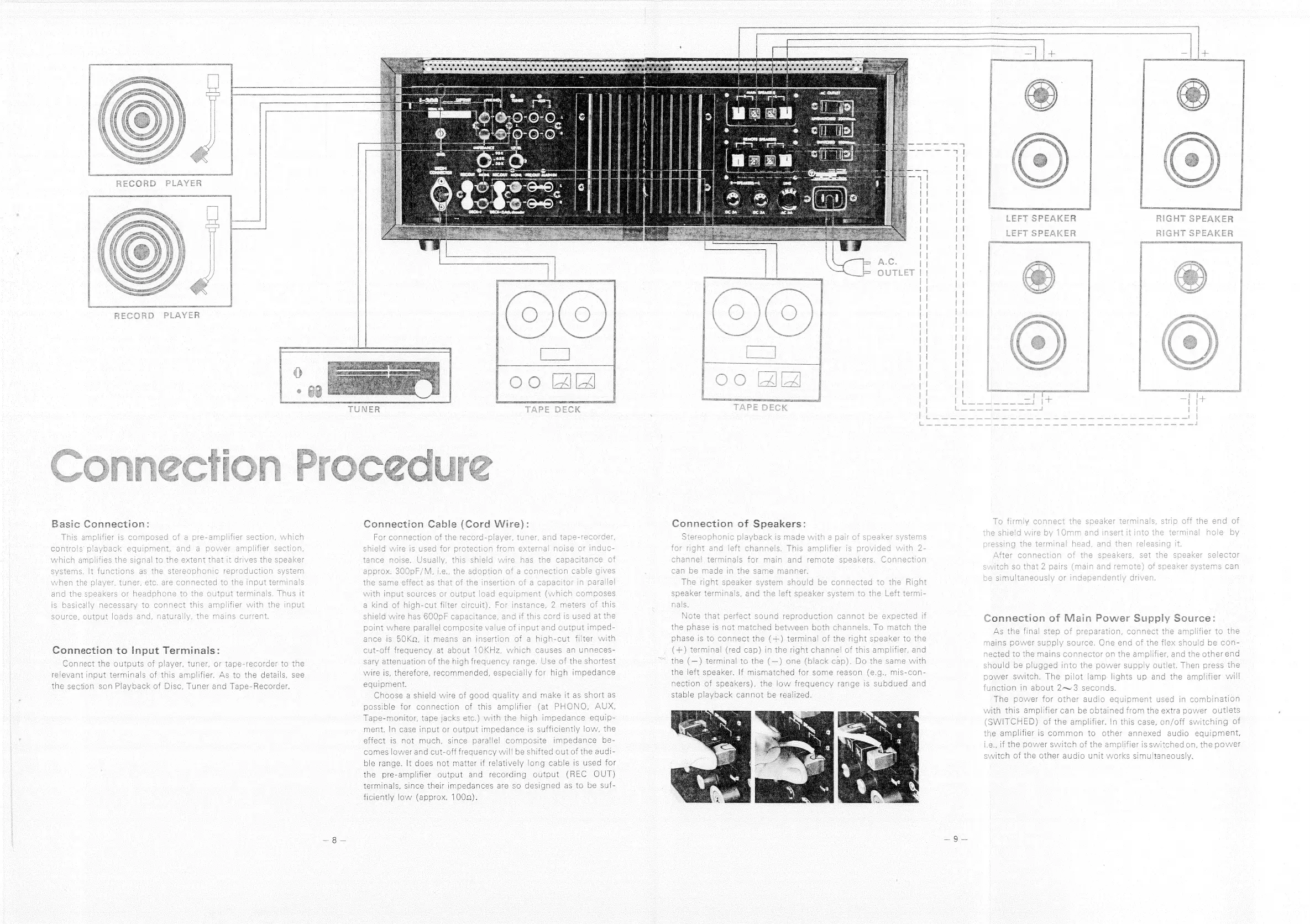 Luxman 308 - Amplifier Connection Procedure; Basic and Input Terminal Setup; Cable and Speaker Wiring; Main Power Supply Connection