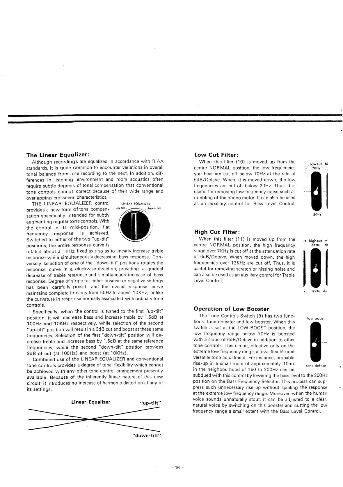 Luxman 308 - Equalization and Filtering Features; Linear Equalizer Functionality; Low Cut and High Cut Filters