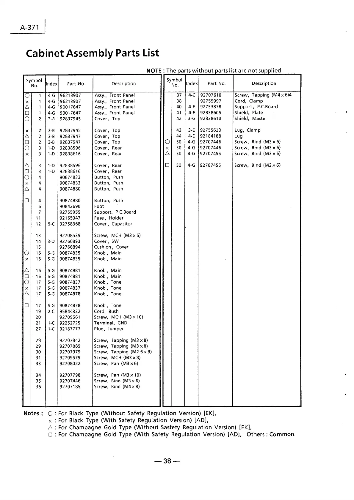 Luxman A-371 - Cabinet Assembly Parts List