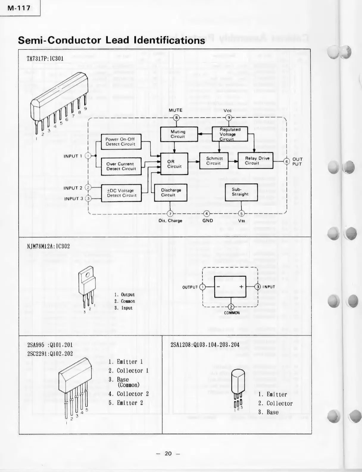 Luxman M-117 - Semiconductor Lead Identification; TA7317 P IC Lead Identification; NJM78 M12 A IC Lead Identification; 2 SA995 & 2 SC2291 Transistor Lead Identification