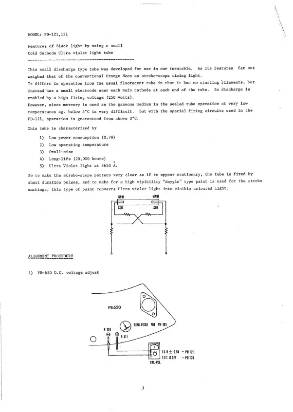 Luxman PD-121 - Alignment Procedure; PB-650 D.C. Voltage Adjustment