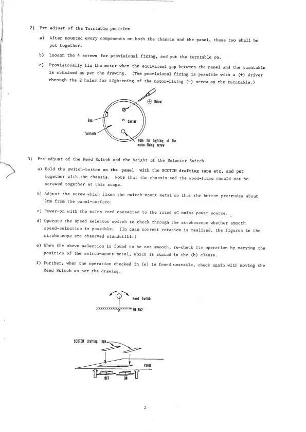 Luxman PD-121 - Turntable Position Pre-adjustment; Reed Switch and Selector Switch Height Pre-adjustment