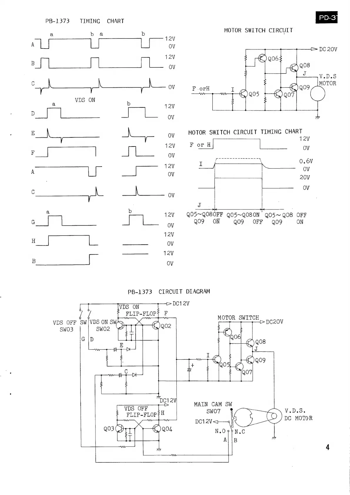Luxman PD-375 - Timing Charts and Circuit Diagrams; PB-1373 Timing Chart; PB-1373 Circuit Diagram; Motor Switch Circuit