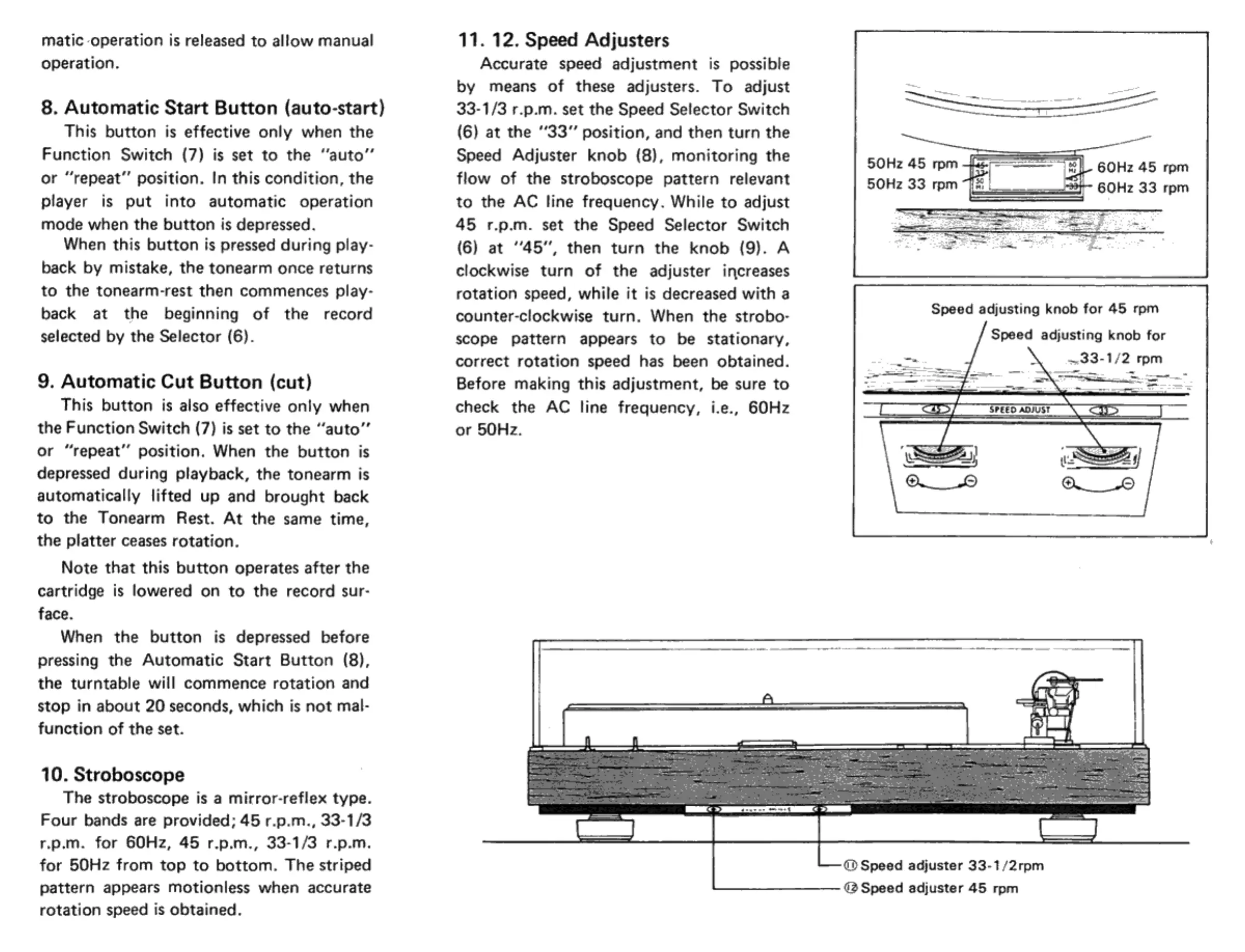 Luxman PD277 - Automatic Start Button Operation; Automatic Cut Button Operation; Stroboscope Function; Speed Adjusters Operation