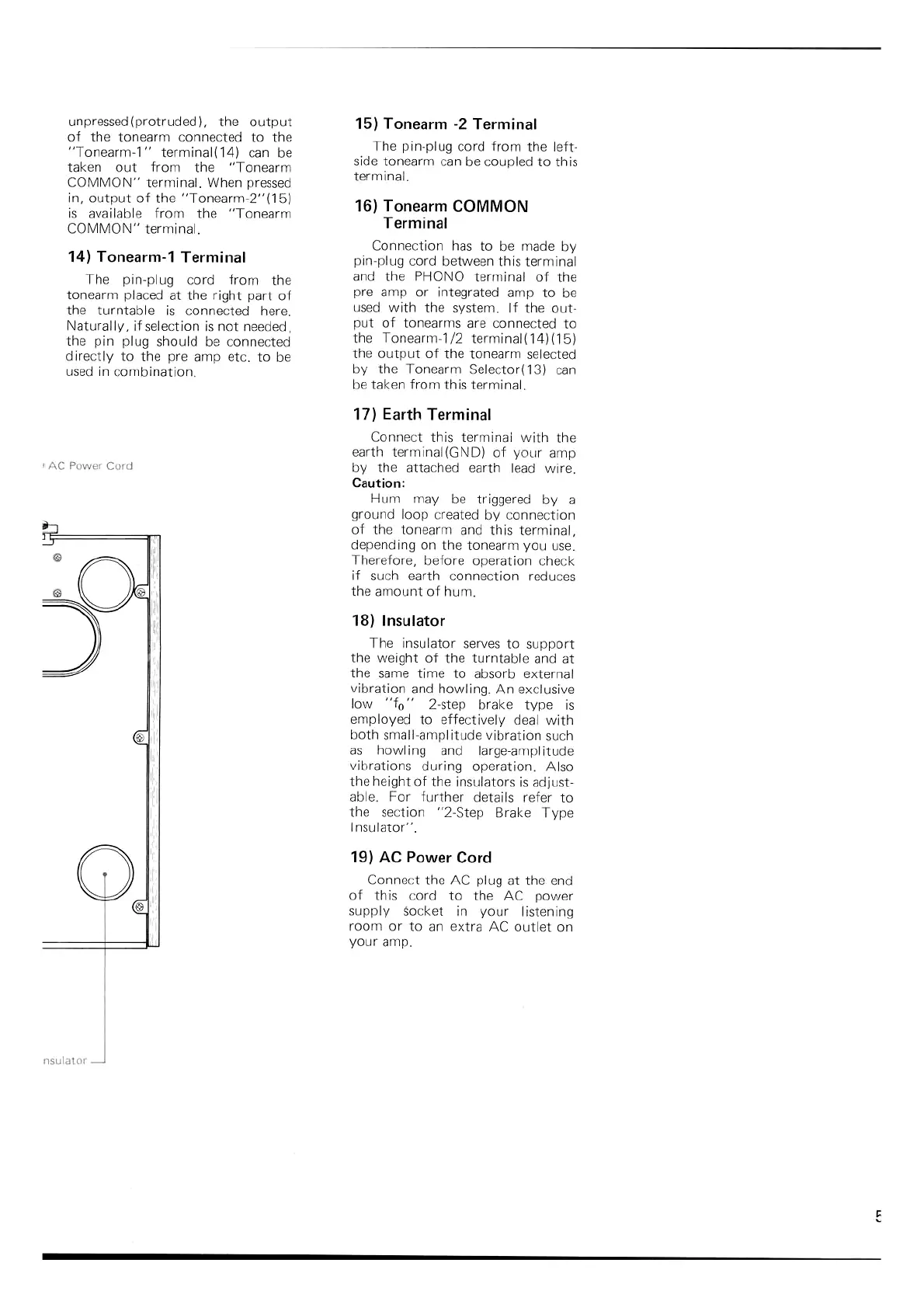 Luxman PD444 - Tonearm-1;Tonearm-2 Terminals; Tonearm Common Terminal; Earth Terminal; Insulator